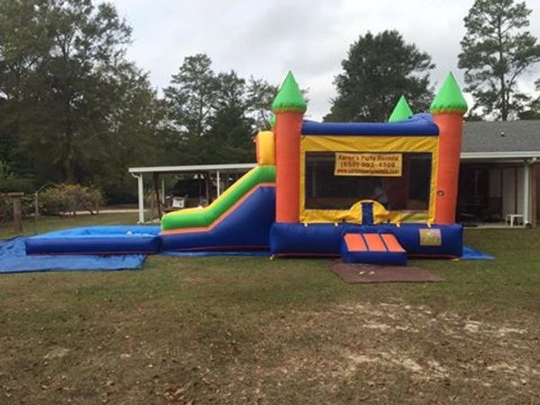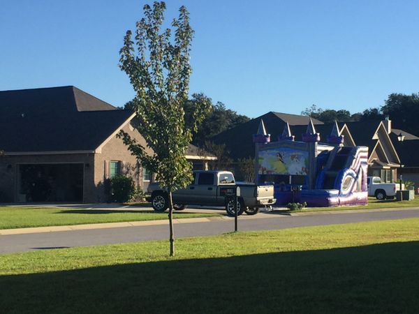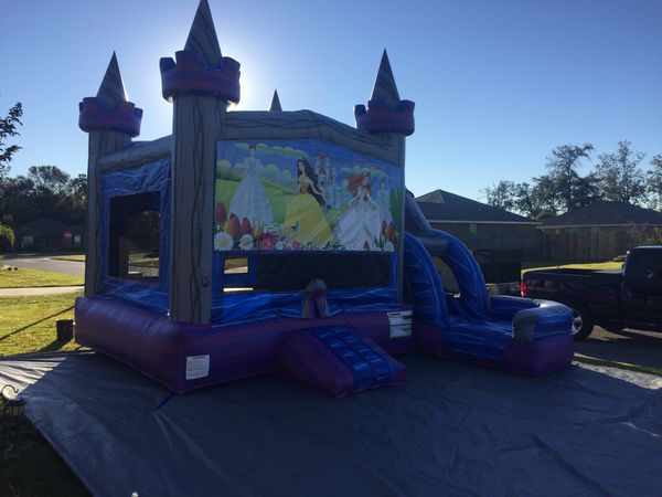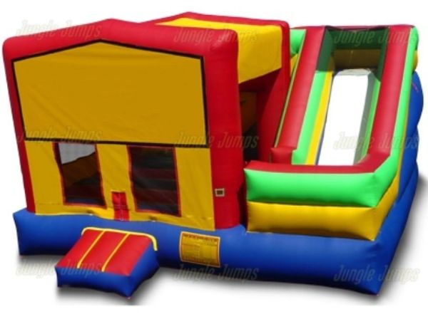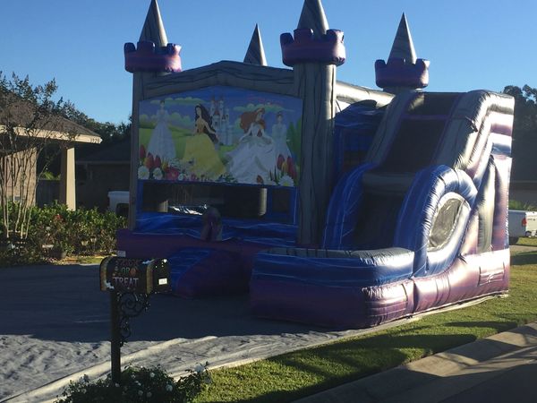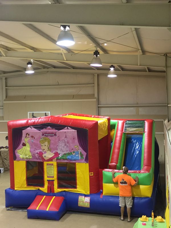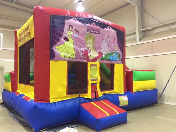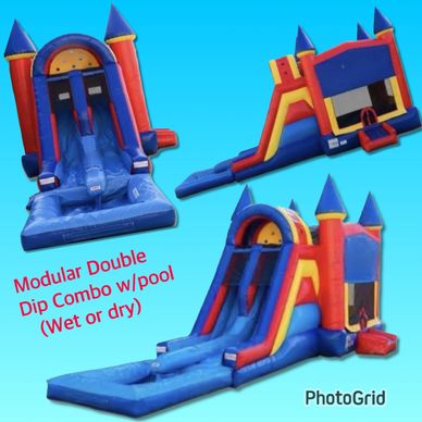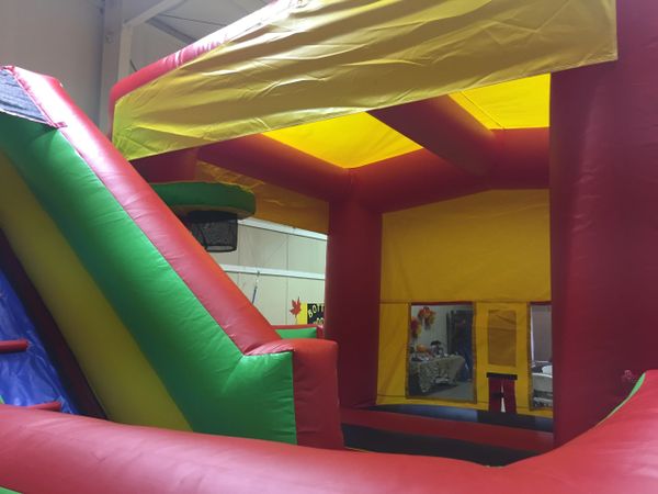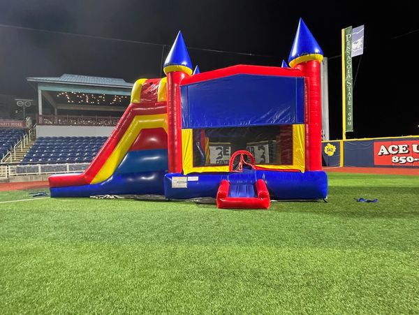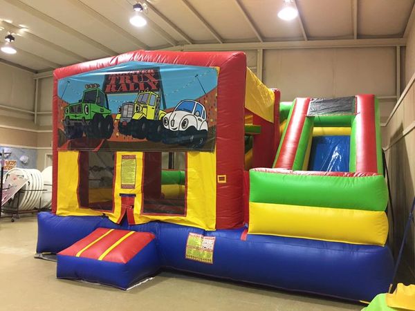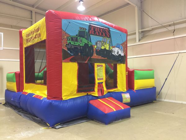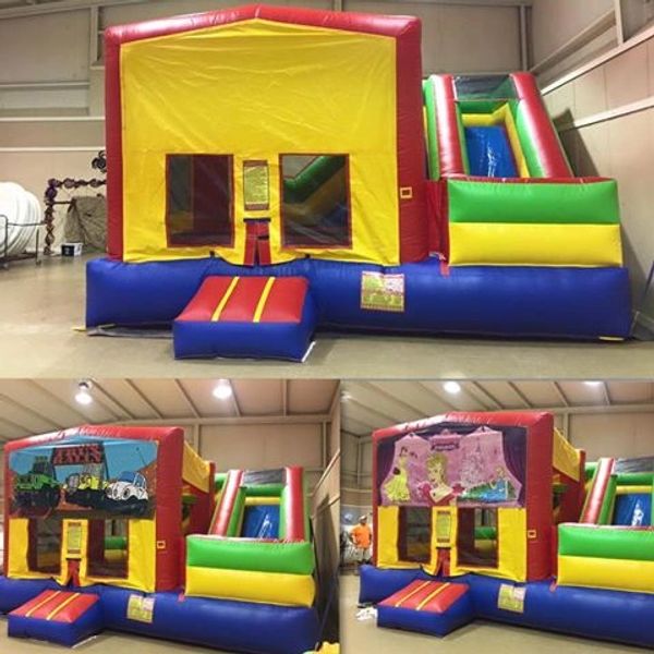 JUMBO PANEL BOUNCER SLIDE COMBO DRY ONLY $165 + TAX . DELIVERY IS INCLUDED IF YOU LIVE LOCAL THIS UNIT HAS A BASKETBALL HOOP INSIDE AND HAS TWO DIFFERENT PANELS WE CAN ADD FOR NO EXTRA CHARGE. MONSTER TRUCKS OR PRINCESS PALACE PANEL THIS UNIT IS APPROXIMATELY 13 FT HIGH, 24FT WIDE AND 22 FT LONG.