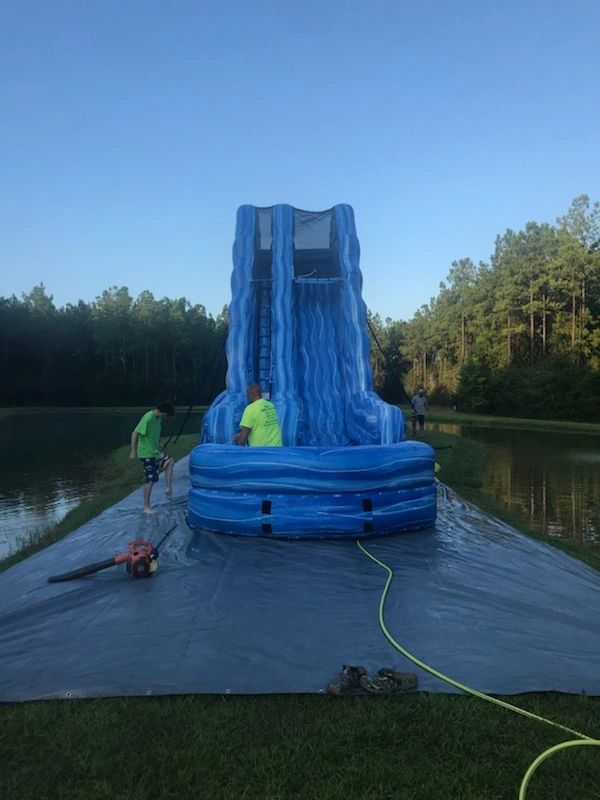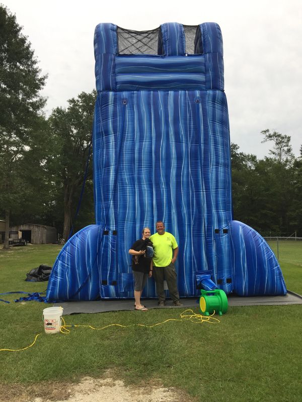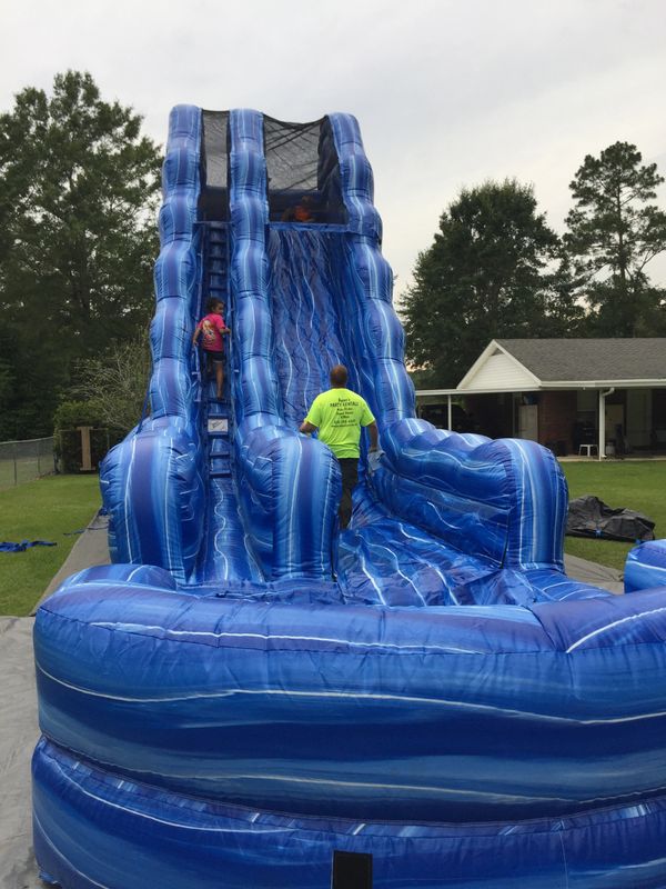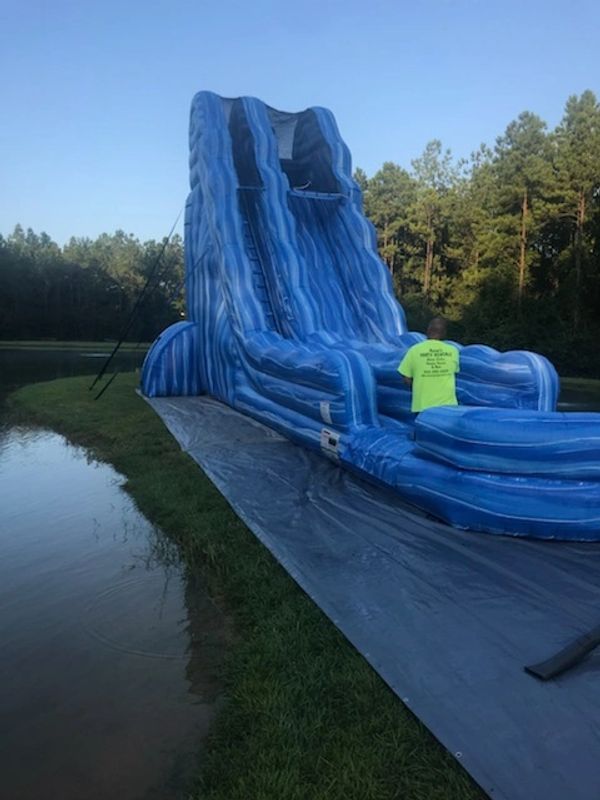 18 ft Boulder Crush Tsunami water slide 235+tax with delivery included if you live local. This unit is approximately 18ft tall 30 ft long and 15ft wide.