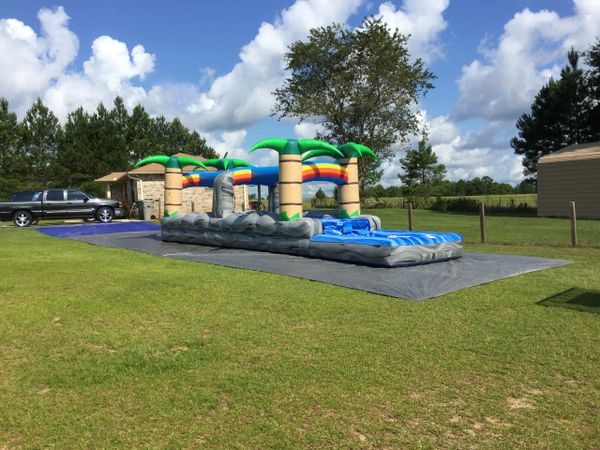 35 FT TWO LANE SLIP AND SLIDE WITH POOL $225+ tax A DAY with DELIVERY INCLUDED IF YOU LIVE LOCAL. THIS UNIT IS APPROXIMATELY 35 FT LONG,11 FT WIDE AND 10 FT HIGH